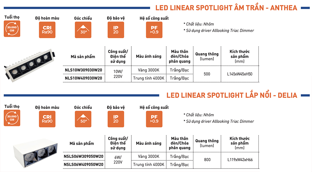 Đèn LED Linear Spotlight lắp nổi - Model NSLS06W309050W20