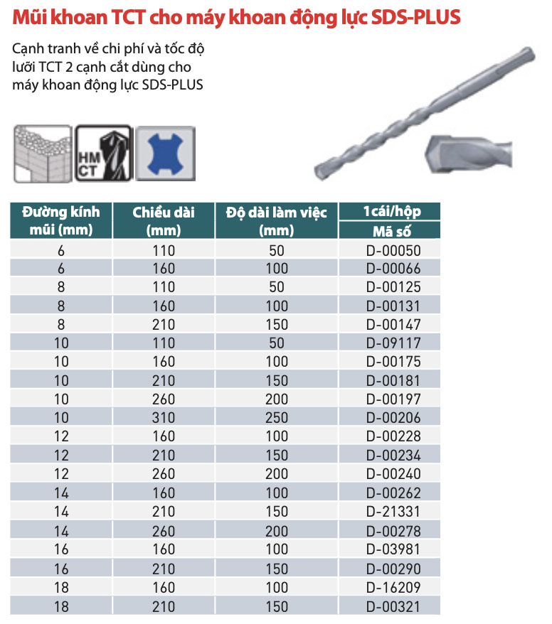 Mũi khoan TCT Makita SDS-PLUS D-16209 (18x160mm)