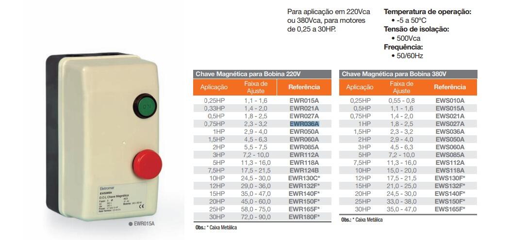 | 1,5HP | 4,5 - 6,3 | EWR060A |